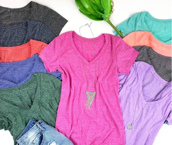 These marbled tees look so comfy! I love the colors. Shipping is Free so grab a bunch to wear all spring and summer.