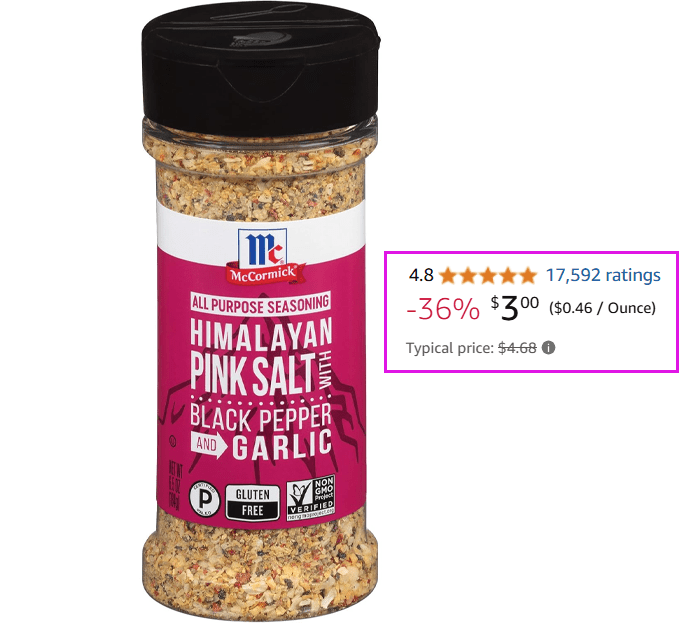 McCormick Himalayan Pink Salt with Black Pepper and Garlic All Purpose Seasoning, 6.5 oz for $3.53 (Reg $4.68)
