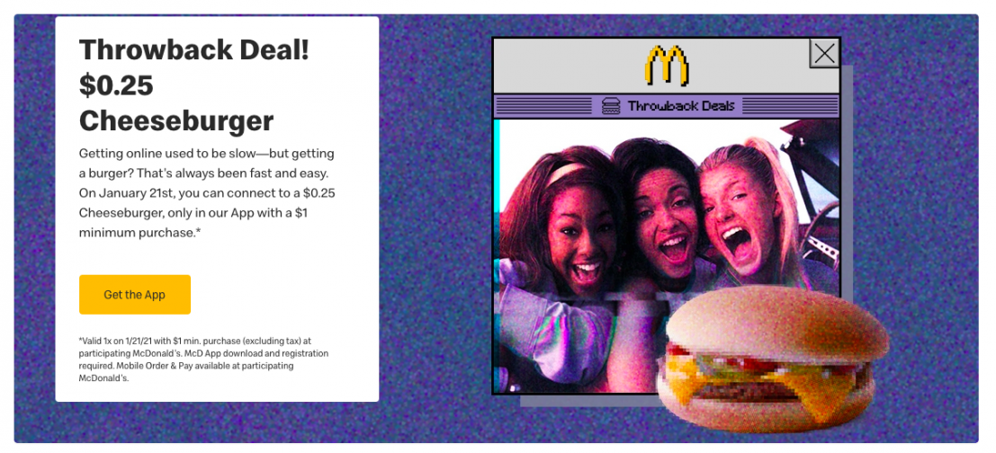 Getting online used to be slow—but getting a burger? That’s always been fast and easy. On January 21st, you can connect to a $0.25 Cheeseburger, only in McDonald’s App with a $1 minimum purchase.