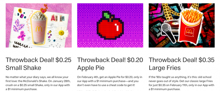 This deal is only good when you make the purchase through the McDonald’s app. These “Throwback Thursday Deals” will be available now through February 11th!