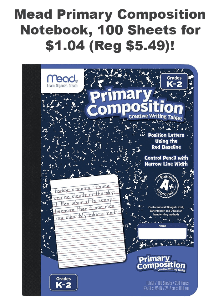 Mead Primary Composition Notebook, 100 Sheets for $1.04 (Reg $5.49)!
