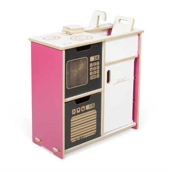 Best of all this Kids Play Kitchen is simple to assemble and stores easily. You can put it up and take it down in a matter of minutes. So if your oldest child has grown beyond the age of pretend kitchens but your next one isn’t quite at that stage you won’t have to cart a heavy, awkward piece of furniture away to the basement or a storage unit. This Kids Play Kitchen comes apart and stores flat so you can easily slide it under a bed or stand it up in a closet without taking up valuable space.
