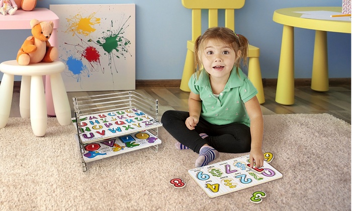 - Colorful puzzles help children learn the alphabet, numbers, and shapes