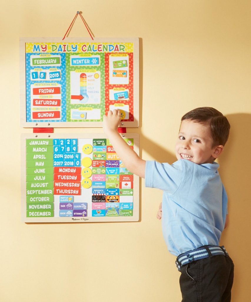 - Daily magnetic calendar to display day of the week, date, weather, and special events