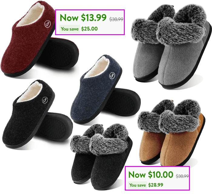 Fuzzy Memory Foam Closed Back Faux Fur Lined House Shoes for $10 (reg $38.99)