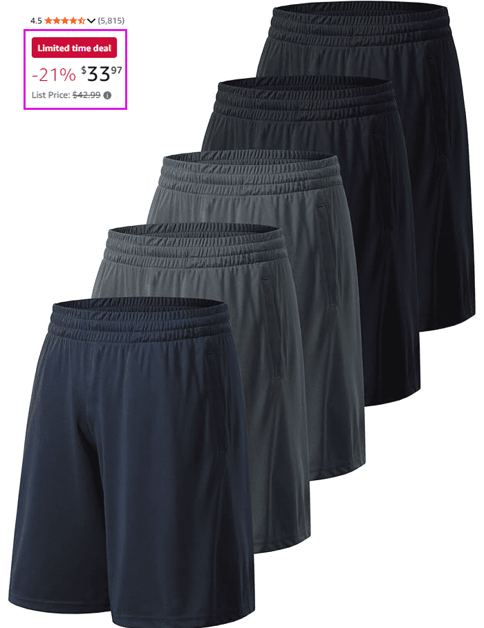 Men’s Athletic Shorts, 5-Pack for $33.97 (Reg $42.99)!
