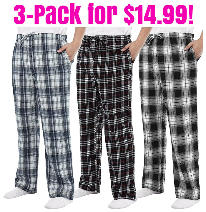 Men’s Flannel Plaid Pajama Pants, 3-Pack for $14.99 (Reg $29.99)!
