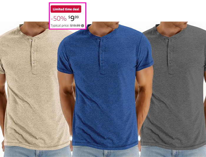 Men’s Henley Short Sleeve Shirts for $9.99 (Reg $19.99)!
