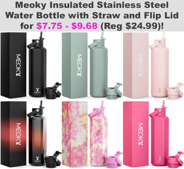 Meoky Insulated Stainless Steel Water Bottle with Straw and Flip Lid for $19.54 – $21.24 (Reg $24.99)