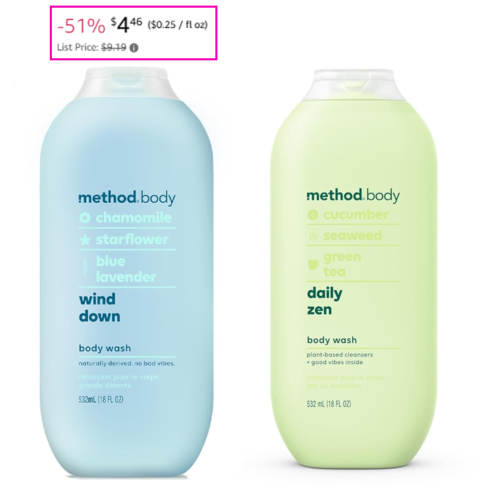 Method Body Wash, 18 oz for $5.25 (Reg $9.19)! *Choose Daily Zen or Wind Down.