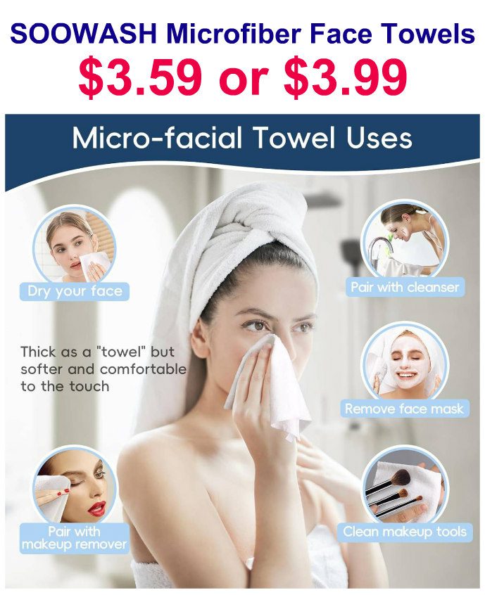Microfiber Face Towels, Pack of 20 for $7.99
