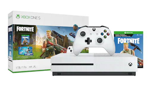 - Bundle Includes: 1TB Xbox One S console, wireless controller, full-game download of Fortnite Battle Royale, the Eon cosmetic set, 2000 V-bucks, a 1-month Xbox Game Pass trial, and 1-month Xbox Live Gold trial. (Game requires Xbox Live Gold, subscription sold separately)