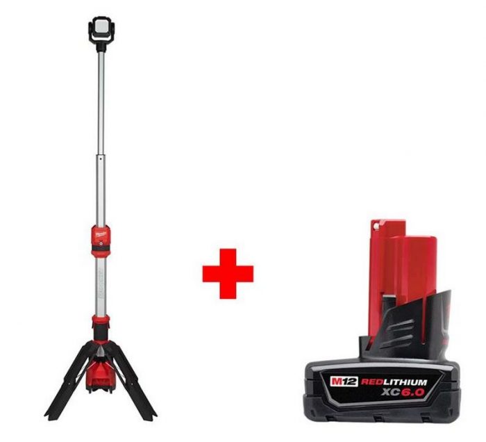 Milwaukee M12 12V Lithium-Ion Cordless 1400-Lumen Rocket LED Stand Work Light w/ 6Ah Battery for $149 (reg $248)