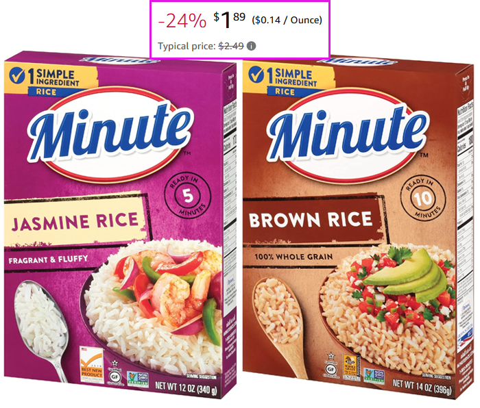 Minute Brown Rice, Instant Brown Rice, 14-Ounce Box for $1.99 (reg $2.49)