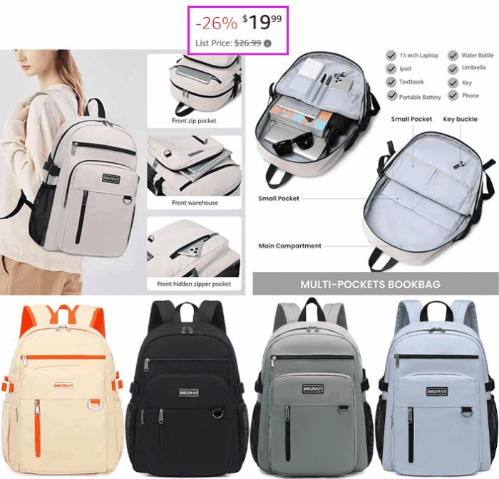 MIRLEWAIY Classical School Backpack for $19.99 (Reg $25.99)!