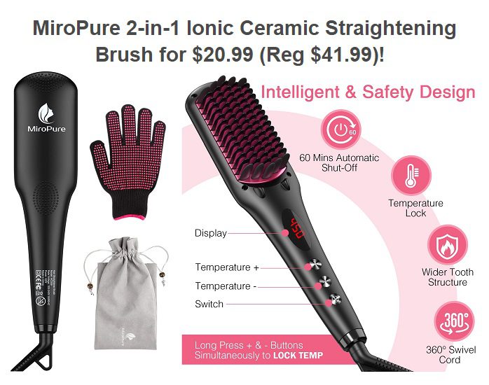 MiroPure 2-in-1 Ionic Ceramic Straightening Brush for $41.99 (Reg $41.99)!