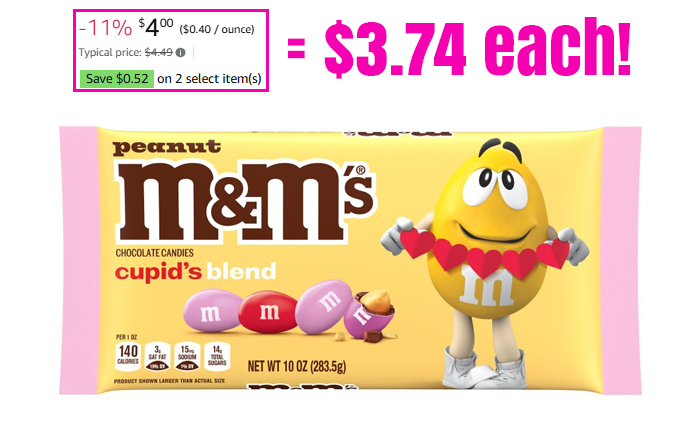 M&M’S Peanut Milk Chocolate Candy Assortment, 10 oz Bag for $4 (Reg $4.49)!