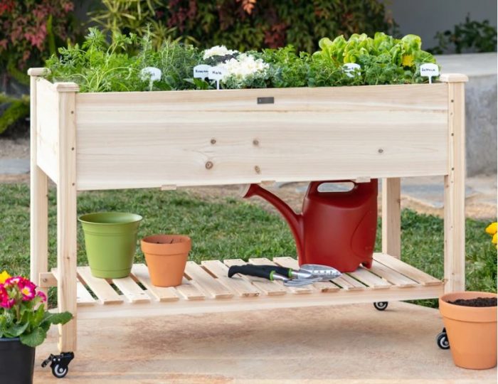 Mobile Raised Garden Bed Elevated Wood Planter w/ Wheels and Storage Shelf for $109.99 (reg $236.99)