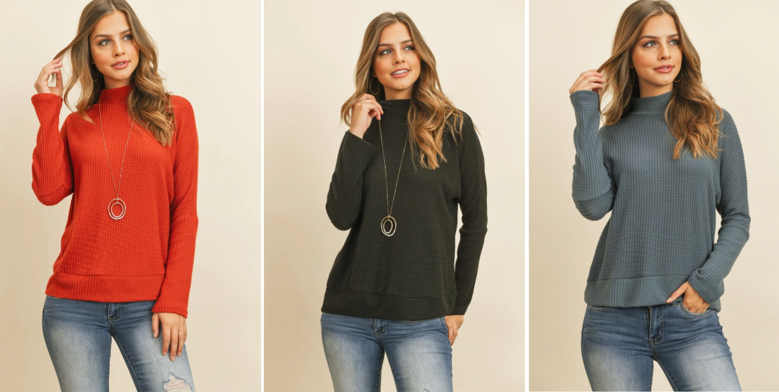 Mock Neck Brushed Waffle Top for $11.99 (Reg $39.99)! *Ends Today*