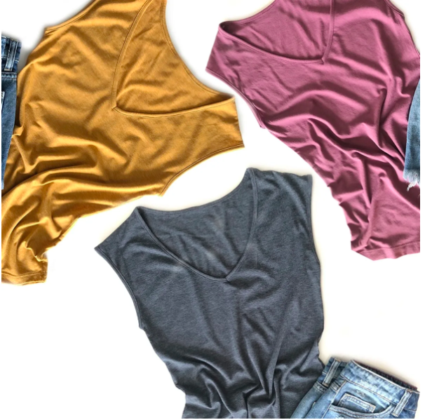 These ultra-soft mock sleeve tees are a must-have for your wardrobe. Perfect worn alone or as a layering piece. Available in several different colors.