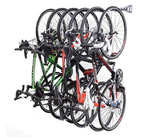 These bike storage racks are easily installed in about 15 minutes! The rack is constructed of industrial steel with a gray powder coat finish built to endure years of heavy use. The hooks snap and slide along the bar allowing you to choose where to place the bikes along the rack. The bike hooks also have a rubber coating to prevent scratches on the rims