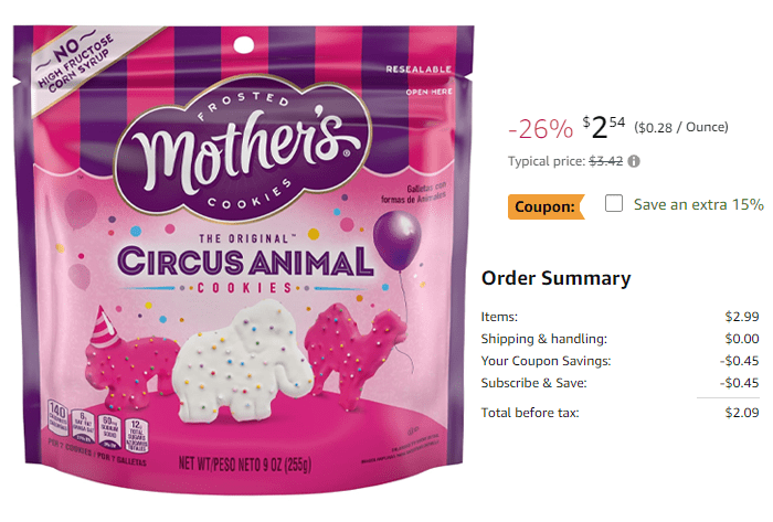 Mother’s Circus Animal Cookies, 9 Oz. for $2.99 (Reg $3.42)