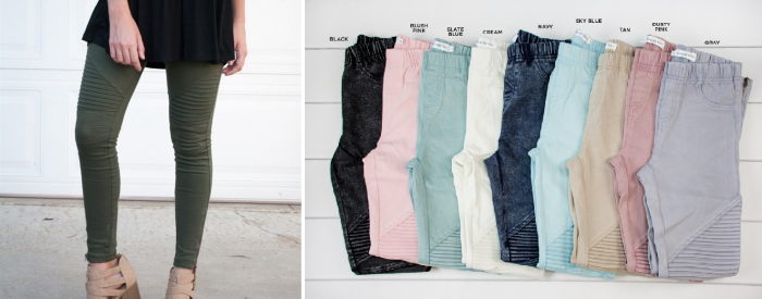 Find lots of colors in stock right now for these trendy Moto Jeggings! They’re priced at just $24.99, which is a great deal for these!