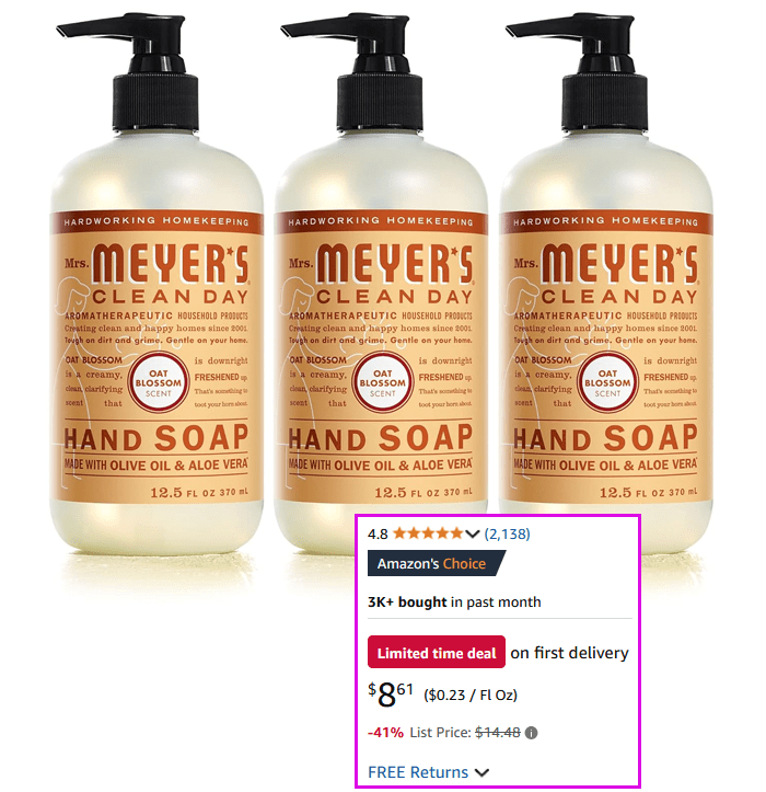 MRS. MEYER’S CLEAN DAY Hand Soap, Oat Blossom, 12.5 fl. oz – Pack of 3 for $10.13 (Reg $14.48)