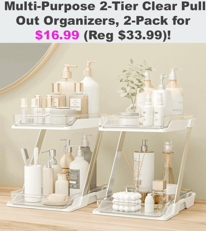 Multi-Purpose 2-Tier Clear Pull Out Organizers, 2-Pack for $16.99 (Reg $33.99)!