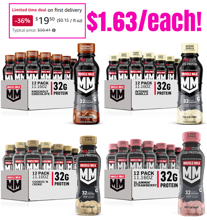 Muscle Milk Pro Series Protein Shake, 32g Protein, 11.16 Fl Oz (Pack of 12) for $22.94 (Reg $30.41)!