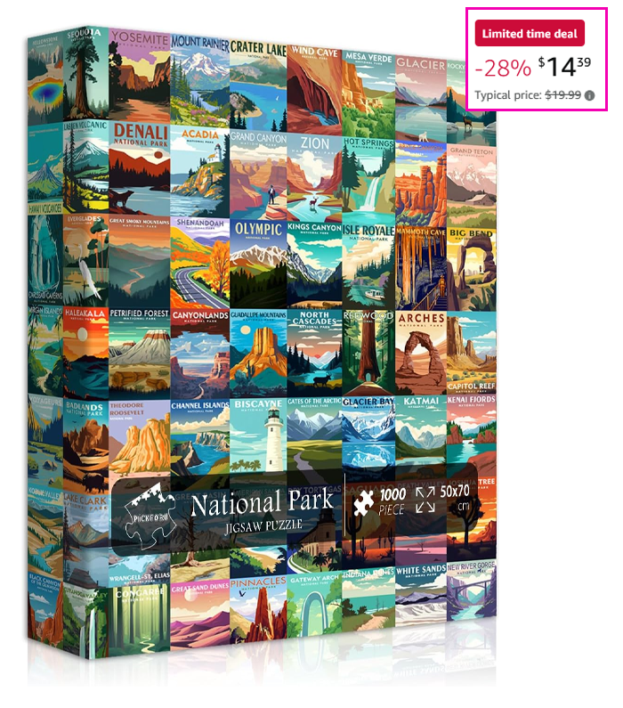 National Parks Travel Poster Puzzle, 1000 Pieces for $14.39 (Reg $19.99)!