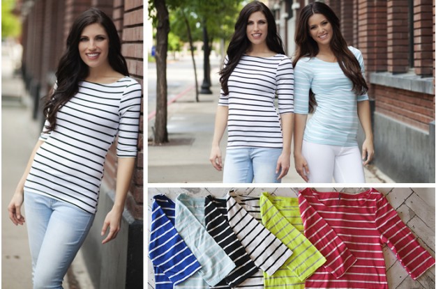 These Nautical Stripe Boat Neck Tops look so cute and comfortable! I love the 3/4 length sleeve, too.