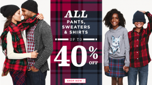 Just in time for this Arctic cold front! Brrrrr! Old Navy has all pants, sweaters and shirts on sale for up to 40% Off.