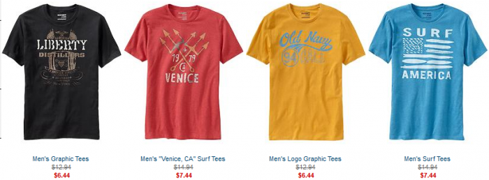 There are a lot of really great deals for men right now at Old Navy (until June 19). You can score 50% off on swimshorts ($12.44), polos ($7.50) and graphic tees ($6.44) (see a few below). PLUS it’s super cash time, so you will earn $10 off your next purchase of $25 with every $25 you spend now. (Redeemable 6/20-26)