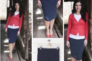 I am loving this Navy Polka Dot Pencil Skirt! You can get it today at Pick Your Plum for $9.99.