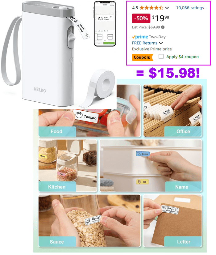 Nelko Portable Bluetooth Label Maker with Tape for $19.98 (Reg $39.99)