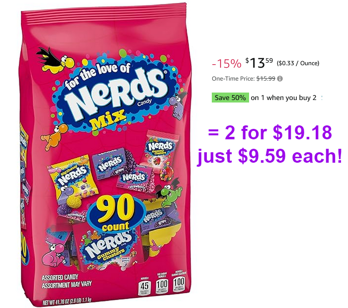 Nerds Assorted Halloween Trick or Treat Candy Mix, 90ct Bag for $15.99