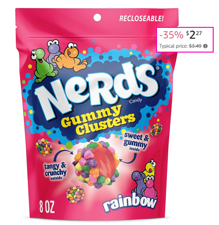 NERDS Gummy Clusters, Rainbow, 8 oz for $2.67 (Reg $3.49)