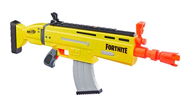 - Dart-blasting fortnite blaster replica: This AR-L blaster is inspired by the blaster used in Fortnite Battle Royale video game, capturing the look and colors of the one in the popular video game