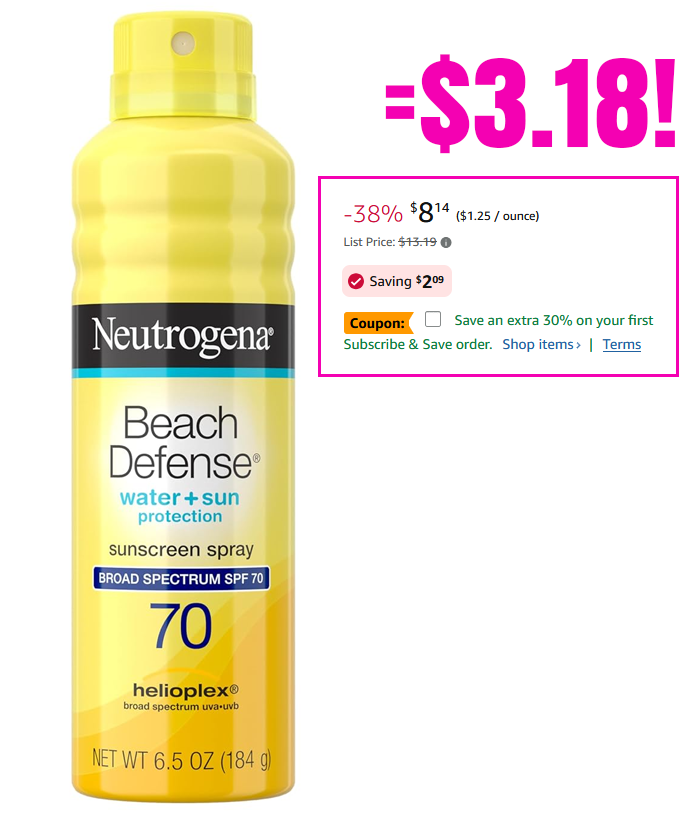 Neutrogena Beach Defense SPF 70 Sunscreen Spray, 6.5 oz from $9.58 (Reg $13.19)!
