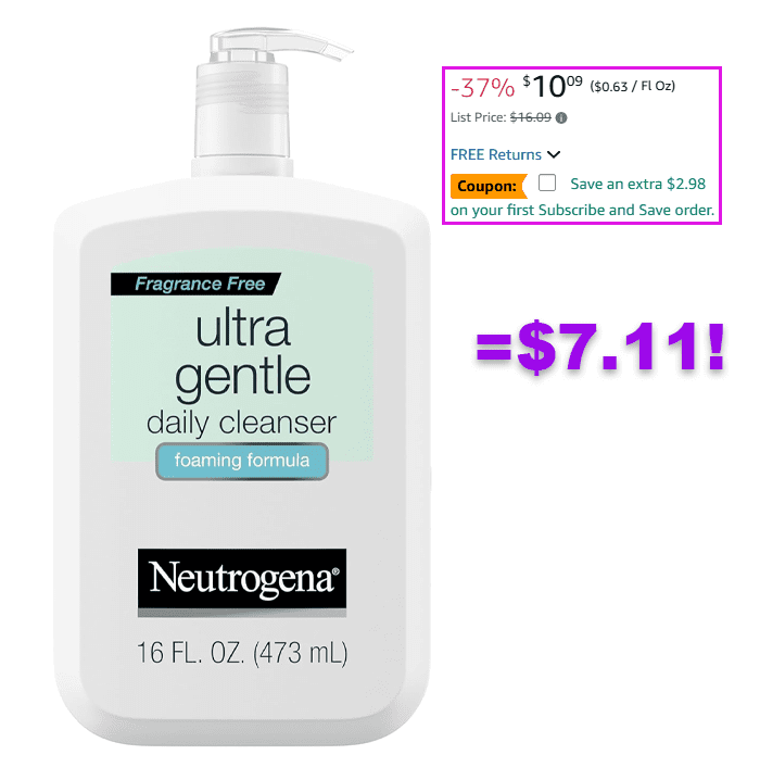 Neutrogena Fragrance Free Ultra Gentle Foaming Daily Cleanser, 16 fl. oz for $11.87 (Reg $16.09)!