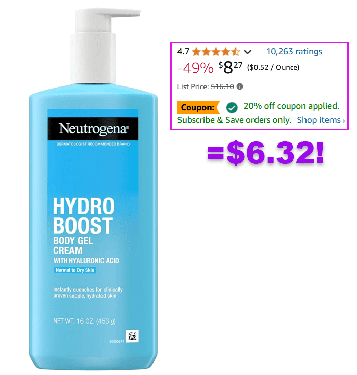 Neutrogena Hydro Boost Body Gel Cream with Hyaluronic Acid, 16 Oz for $9.73 (Reg $16.10)
