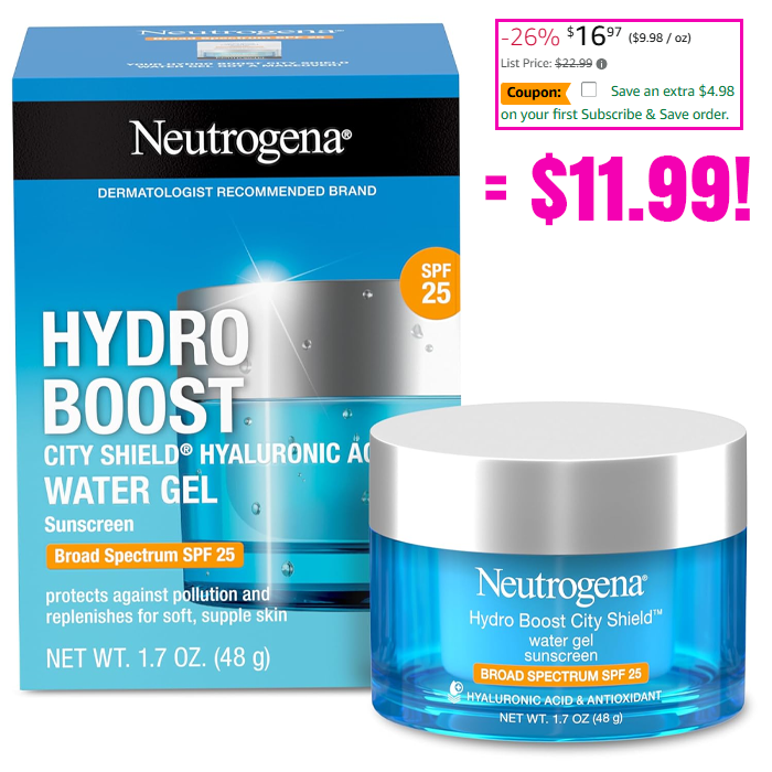 Neutrogena Hydro Boost City Shield Water Gel Face Moisturizer with Broad Spectrum SPF 25 for $19.97 (Reg $22.99)