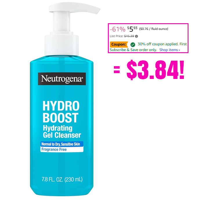 Neutrogena Hydro Boost Face Wash, 7.8 fl oz for $6.98 (Reg $15.39)