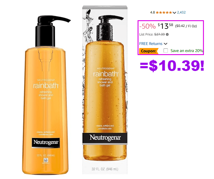 Neutrogena Rainbath Body Wash, 32 Oz for $15.98 (Reg $27.39)