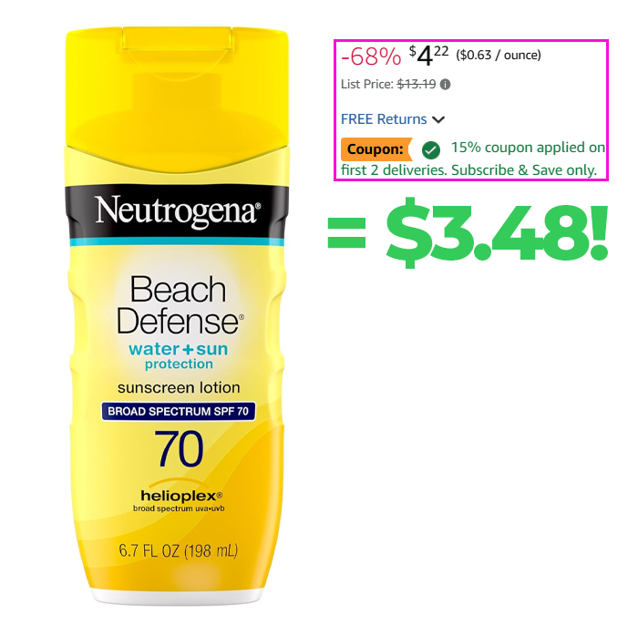 Neutrogena Sunscreen Lotion Beach Defense SPF 70, 6.7 Fl Oz for $4.22 (Reg $13.19)