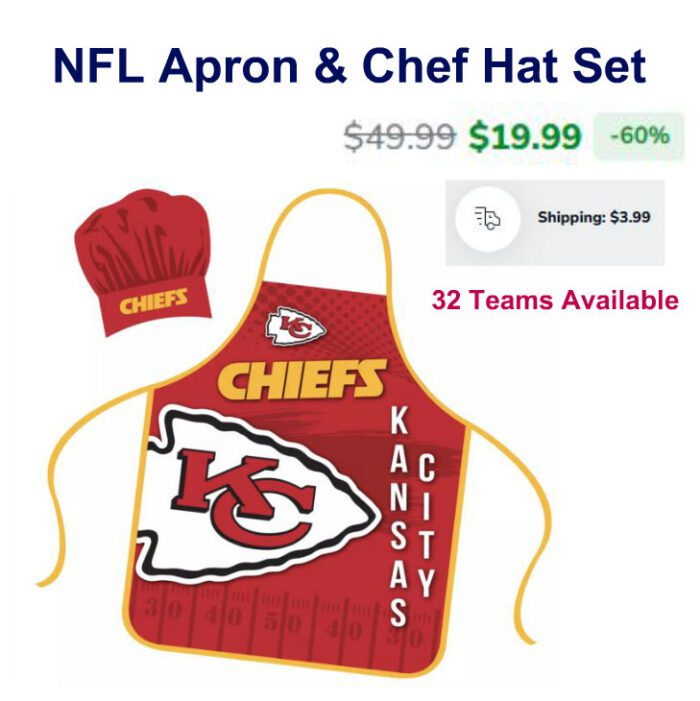 NFL Apron & Chef Hat Sets $19.99 (reg $49.99)