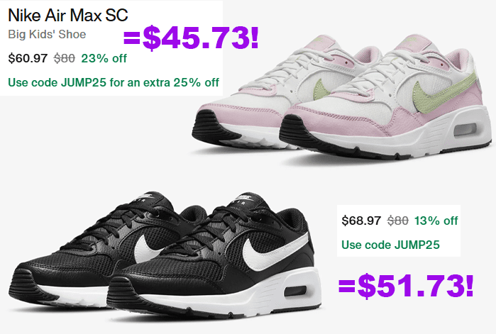 Nike Air Max SC Big Kids’ Shoes for $60.97 or $68.97 (Reg $80)