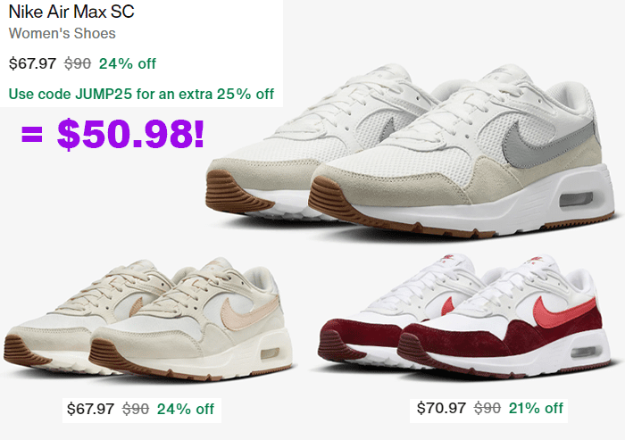 Nike Air Max SC Women’s Shoes for $67.97 (Reg $90)!