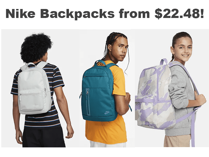 There are a bunch of cool backpacks on sale at Nike, and some of them have an extra 25% off!